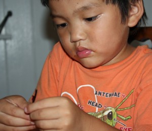 If you’re using fresh peas have a little person help you shell the peas. Small fingers are better at removing the goodies inside….